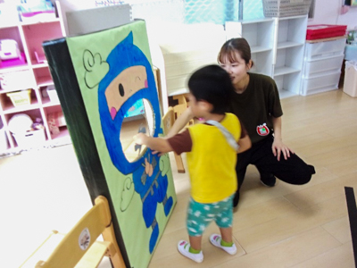 網くぐりや的当てにチャレンジ!諦めずに頑張る気持ちが大事。最後はキラキラの手裏剣をゲット!立派な忍者になれたかな?