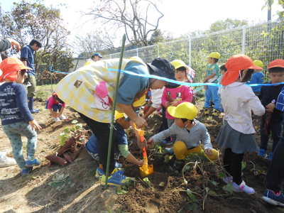 昨年は“ゆうあいはたけ”にイノシシさんが来て、美味しいお芋が全部食べられてしまいましたが、今年は子ども達が美味しく食べることができます。