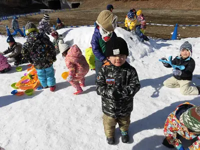 「怖かった~」と言いながらもう一回もう一回とやみつきになる子と、「怖いから広場で遊ぶ~」という子もいましたが、みんな1回はそりすべりにチャレンジしました。