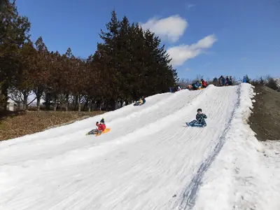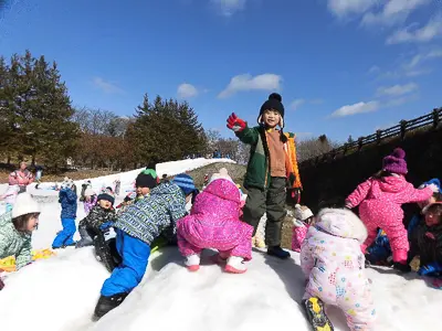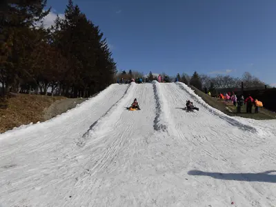 公園について雪遊び広場に到着すると大きな雪山にビックリ!