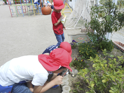 おかばんをロッカーにしまい、帽子をかぶるとスイッチONで元気に外に飛び出していく子どもたちです!