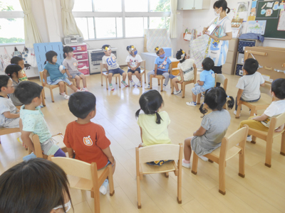 入園したての年少さんもきちんと座って、お話しを聞けるようになりました。